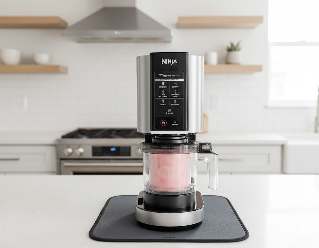 The Kozie Slide™ Sound-Reducing Appliance Mat was designed specifically for the Ninja Creami® to help reduce vibration noise while protecting your kitchen counters.